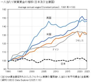 「実質賃金」を簡単に説明すると、実際に支払われる賃金を物価変動の影響を考慮して調整した賃金のことであり、実質的な購買力を示すものだ。